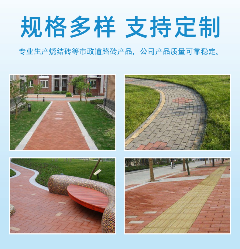 ①.廣場磚源自行業(yè)嚴格的選料標準和獨特的高溫慢燒技術,要求吸水率<5%。原料配方中的瘠性料比例占70%,可塑性原料30%左右。②.通體廣場磚仿天然花崗巖石或紫砂巖石,花紋肌理自然,質(zhì)感古樸厚實,綜合物理性能優(yōu)良。